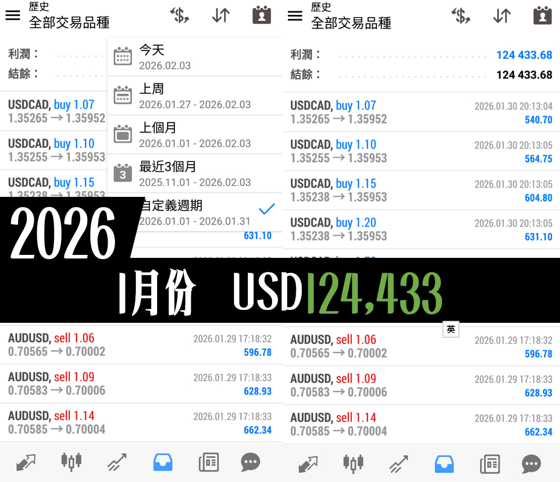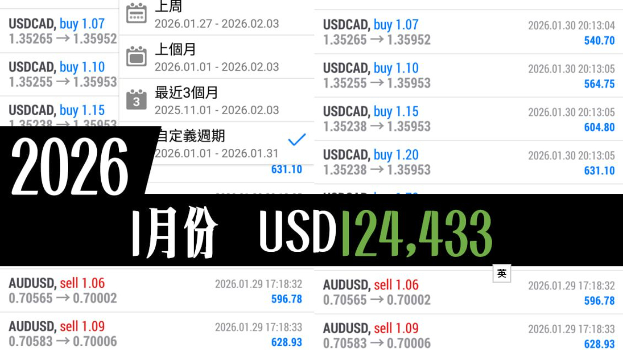 過去一月份,我們成功盈利12.4萬,精准把握美元疲弱與黃金強勢。